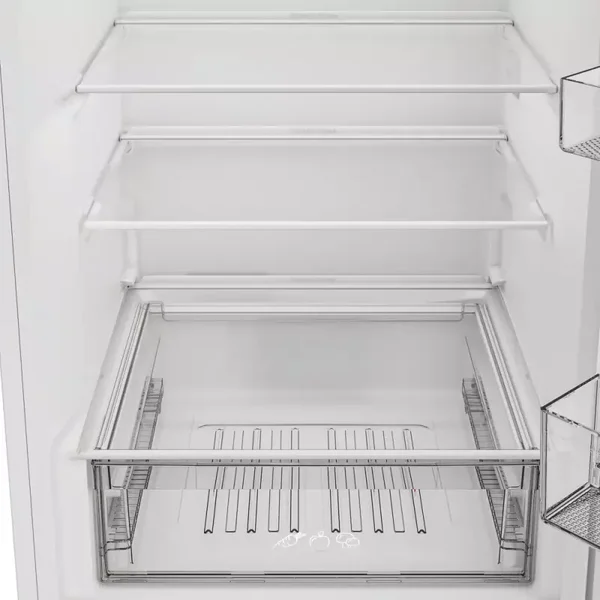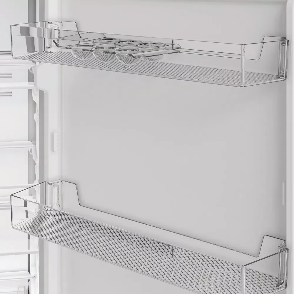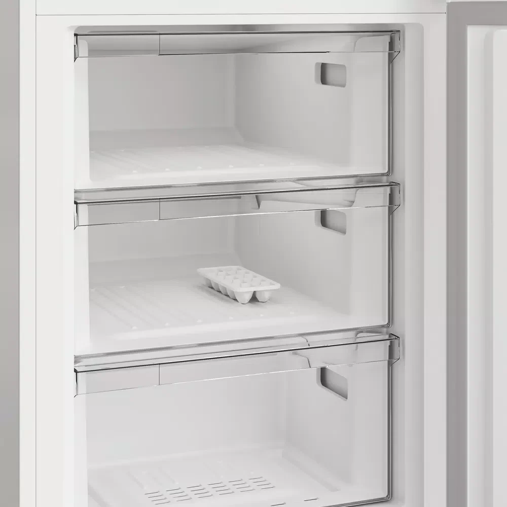 Make storing the weekly shop easier with this Indesit freestanding 60/40 fridge freezer in modern silver. It has a 343L capacity, which gives you plenty of room for up to 19 shopping bags of groceries, allowing for easy unloading after a big shop. Low Frost means less ice and more room inside your freezer. Easy-to-clean glass shelves make it simpler than ever to keep your freezer frost-free. Inside the fridge, there's a dedicated Fresh Space that creates the right conditions to keep your fruit and vegetables fresh. Energy-efficient LED lighting also gives you maximum visibility of every shelf and corner. You can customise the fridge to suit your needs, with flexible inner door balconies and adjustable shelves that create space for tall bottles and larger items. Fitted with SmoothFit°, our space-saving 90° door hinge allows this fridge freezer to fit easily into any kitchen layout - whether that's next to walls, tucked into corners or in tight spaces. Should the fridge door be left open, the handy fridge door alarm will alert you.