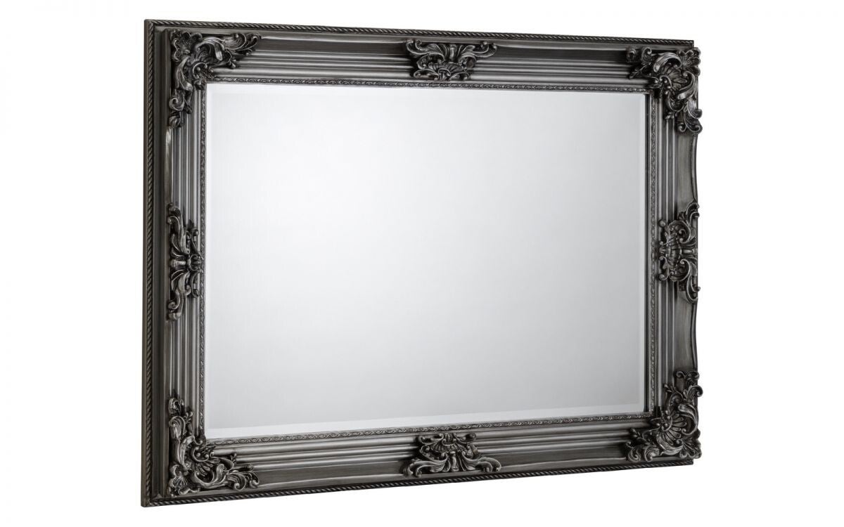 The Rococo wall hanging mirror is a contemporary take on a classic design. Featuring high quality bevelled edges with antique effect detailing in a pewter effect finish, suitable for a wide range of décor. Crafted from a hardwood frame with resin moulding, this mirror can be hung either in a landscape or portrait orientation suitable for any room.