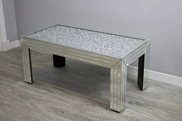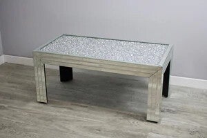 The Gatsby Mocka Coffee table is a real statement piece for any modern lounge. Stunning crushed diamond top with mirrored panel sides and legs.