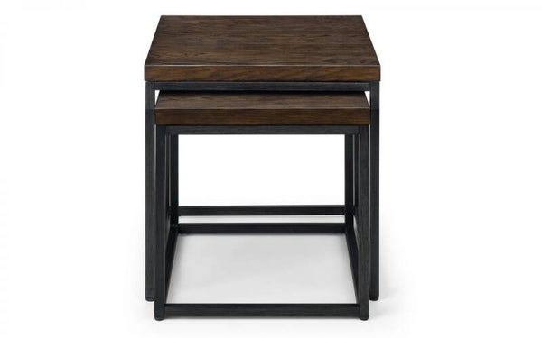 Made from solid oak, these Nesting Lamp Tables offer a rustic finish emphasising the dark oak wood grain. The Brooklyn Nesting Lamp Tables offer a vintage edge featuring industrial style metal legs. Stylish, functional and well proportioned, these lamp tables are a perfect space saving solution suitable for a wide range of modern decor. Part of the Julian Bowen Brooklyn Dining and Occasional Collection.