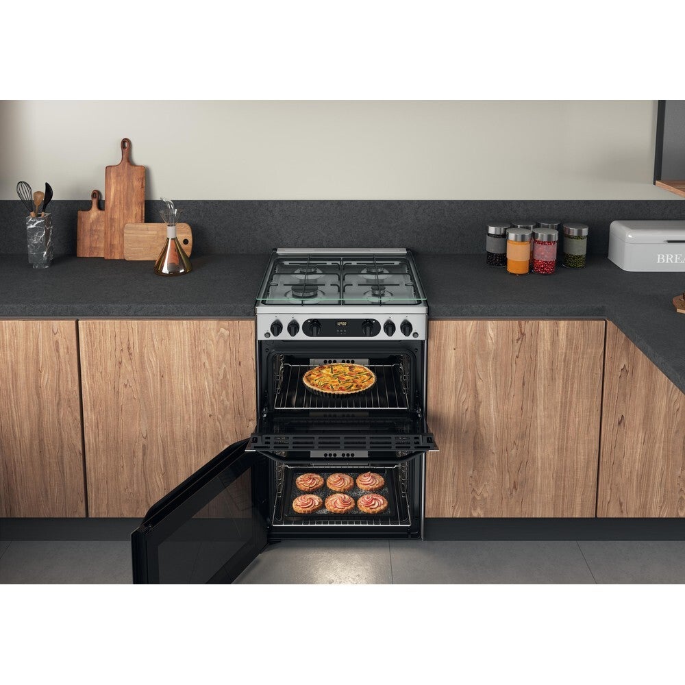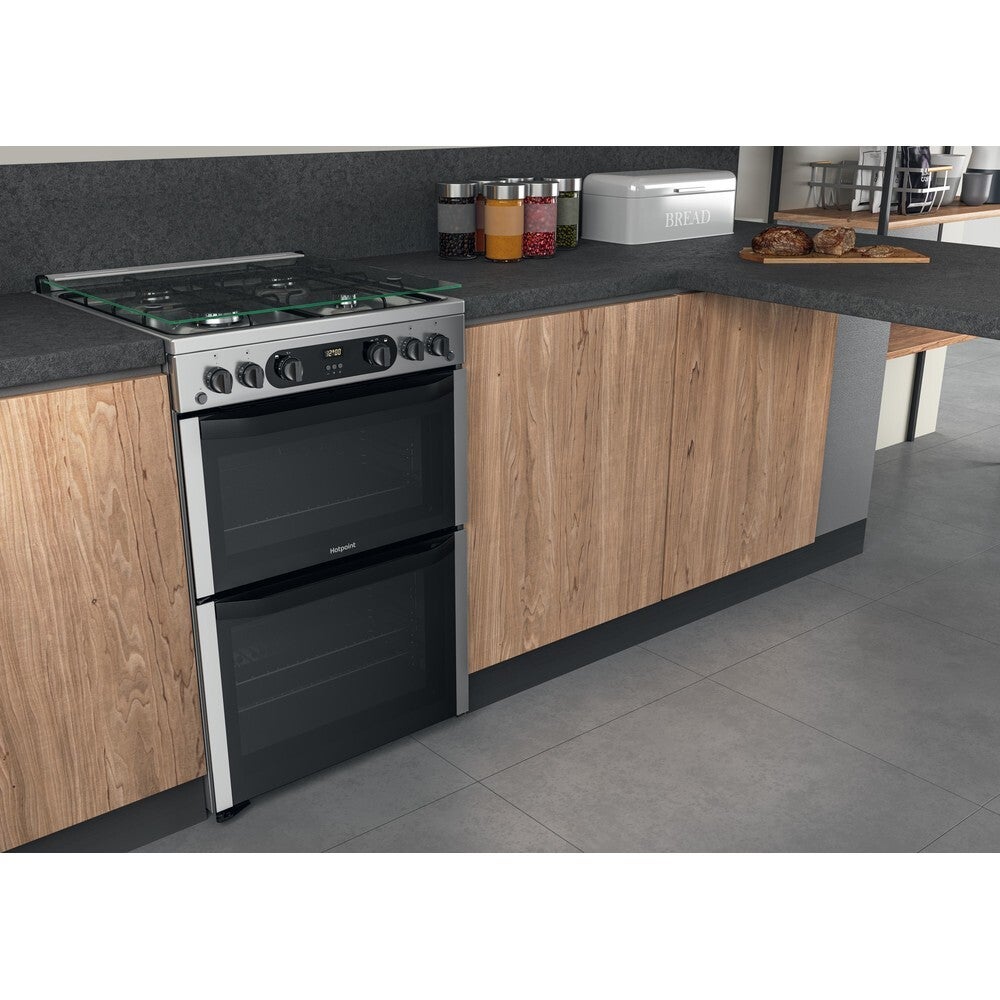 Hotpoint HDM67G0CCX/UK Gas Double Cooker - Inox 60cm