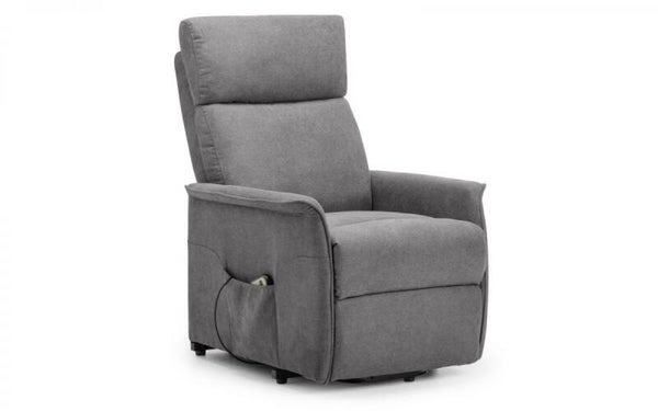 The Helena Rise and Recline Chair is a deep, soft and extremely comfortable chair in a charcoal fabric finish. Offering stlye and practicality, this chair is the perfect addition for a wide range of home decor. Featuring a motorised mechanism that provides a helpful lift out, or relaxing recline position at the touch of a button.